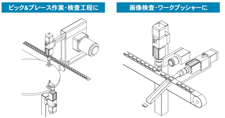 エアーで吸着させて部品を移載する、部品の耐久試験、電子部品、プローブの導通検査に高速作業ができて最適です。