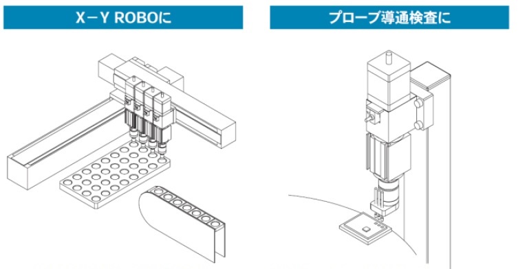 エアーで吸着させて部品を移載する、部品の耐久試験、電子部品、プローブの導通検査に高速作業ができて最適です。