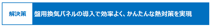 STEGO製盤用換気パネルを使用すれば、換気面はもちろん、作業面やコスト面においても効率の良い熱対策が可能となります。
