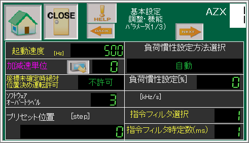 この設定パネルがあれば、ドライバに格納されているモータ情報より、現在位置・運転速度・トルク値・