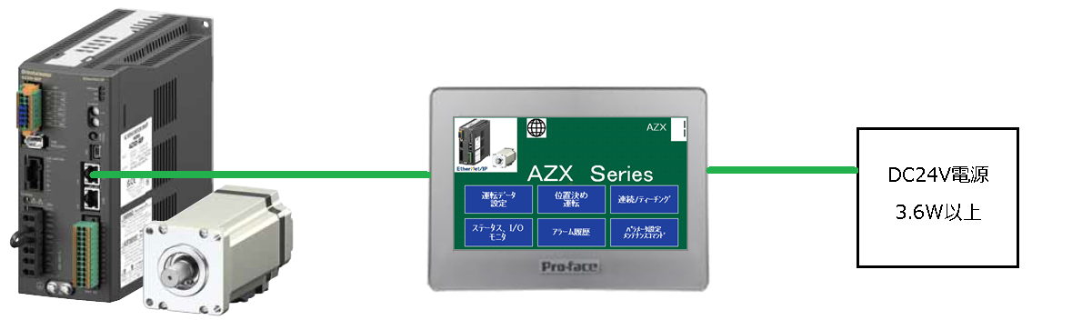 - オリエンタルモーター製サーボモーターAZXシリーズを簡単に設定、操作できるタッチパネルです。