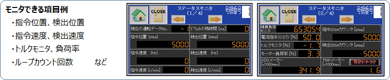 モータ温度・アラーム履歴などを表示させることで、モータの状態監視ができます。