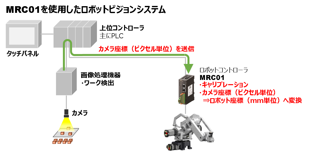 これをMRC01を使用した場合のロボットビジョンシステムは以下のようになります。