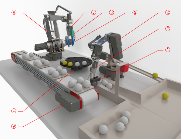 ROBOT TECHNOLOGY JAPAN 2022(会期:2022年6月30日~7月2日.会場:愛知県国際展示場)に展示した自動化ラインのデモンストレーション機が大変ご好評をいただきましたので、改めましてWEBサイトでご紹介させていただきます。2台のロボットアームを中心に「PLC」も「外部センサ」も使わずシンプルに設計しました。