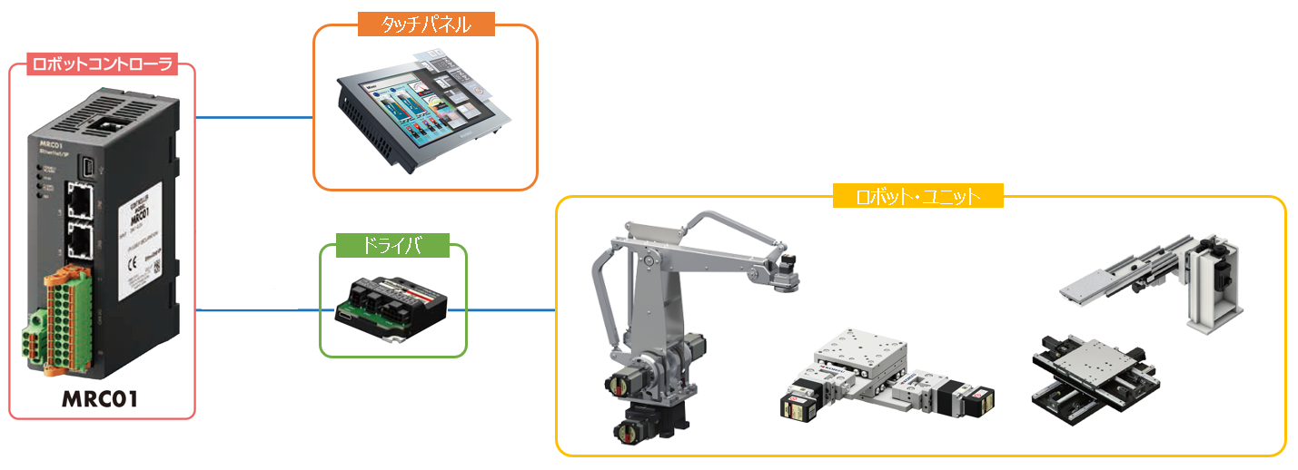 ロボットコントローラ MRC01※を使用することにより、一般的なロボットよりもシンプルで簡単なシステムを